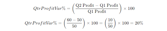 “Qtr प्रॉफिट वार %” की गणना इस प्रकार की जाती है: