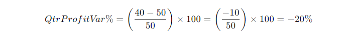 तो Q1 में ₹50 करोड़ था और Q2 में ₹40 करोड़ हो गया, तो “Qtr प्रॉफिट वार %” इस प्रकार होगा: