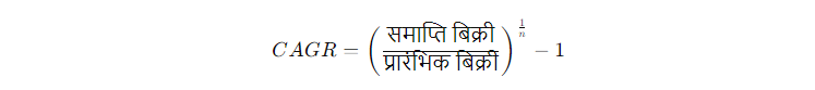 जो किसी निवेश या कंपनी की बिक्री की वार्षिक वृद्धि दर को दर्शाता है। CAGR का सूत्र इस प्रकार होता है: