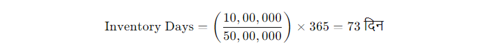 उसकी वार्षिक लागत ₹50,00,000 है, तो उसकी “इन्वेंटरी डेज़” की गणना इस प्रकार की जाएगी: